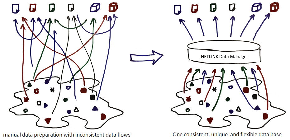 A consistent steering system requires the transformation of data into an integrated overall view, instead of looking at isolated sources separately. The integrated view assures a consistent and unique data basis for analyses and reports. If data is not available or doesn't meet quality requirements, it needs to be gathered or enriched first. Sometimes it is not possible to implement new data fields or new business logics in existing IT systems in time. New steering system is built with Excel spreadsheets instead. Excel is a very versatile tool for data preparation and for reports, but it can lead to problems and risks when using it also for data storage.